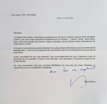 Une reconnaissance nationale, obtenue face à des chiens de trÚs haut niveau, qui vient saluer un travail de sélection mené avec exigence, cohérence et engagement.